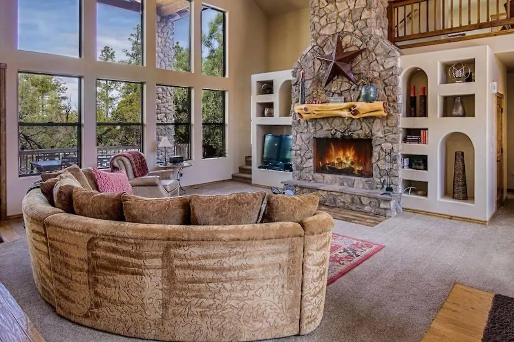 De 2-slaapkamer Torreon Family Cabin, Large Decks & Open Floorplan Villa bevindt zich op 6 km van Show Low Bluff Trail en nodigt gasten uit om attracties in de omgeving te verkennen.